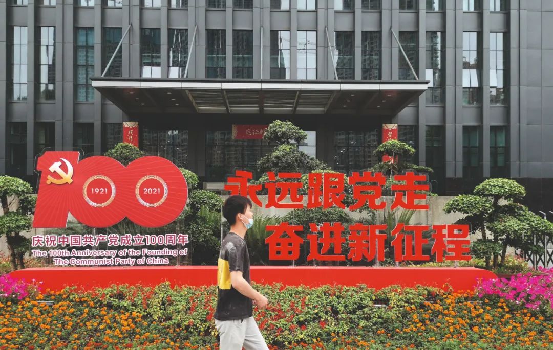 2021年5月28日,武汉,建党百年展板。