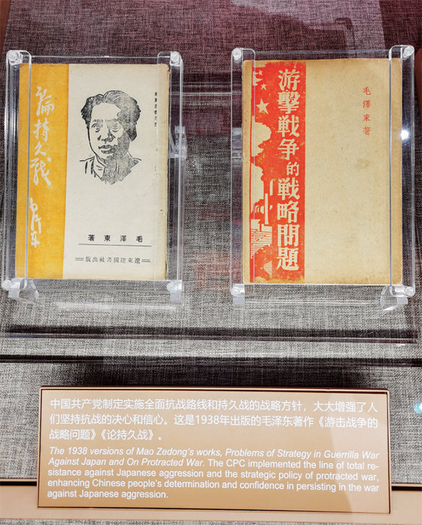 一百年来,党总是能够在重大历史关头从战略上认识、分析、判断面临的重大历史课题,制定正确的政治战略策略,这是党战胜无数风险挑战、不断从胜利走向胜利的有力保证。图为上海中共一大纪念馆展出的1938年出版的毛泽东著作《论持久战》和《游击战争的战略问题》。 人民视觉供图