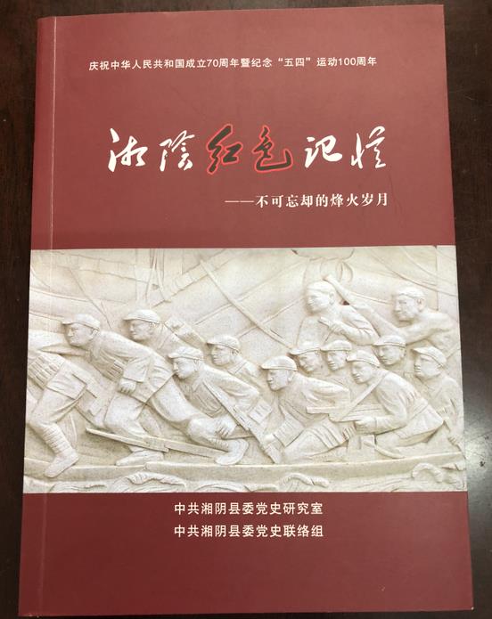 9月,为配合湘阴县“不忘初心,牢记使命”主题教育活动的开展,大力弘扬听党话、跟党走主旋律,县委党史研究室编纂出版了《湘阴红色记忆》。全书25万余字分为“回首当年”、“彪炳史册”、“伟人足迹”、“英雄烈士”、“永恒纪念”五个篇章,以翔实的史料、生动的事迹、感人的故事,讲述了1919年--1949年湘阴人民在党的领导下,为无产阶级革命事业前赴后继、英勇奋斗的光辉历程。