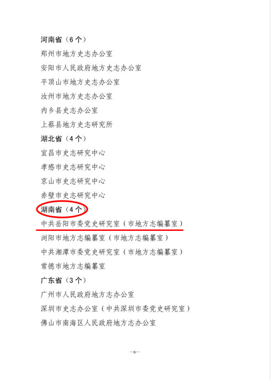 岳阳市委党史研究室获评“全国地方志工作先进集体”