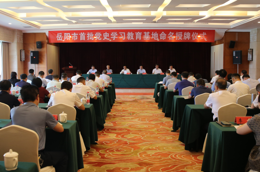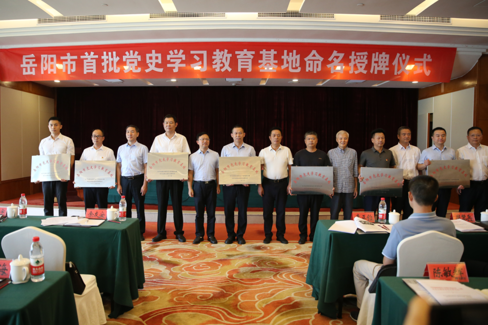 市委党史研究室党组书记、主任李术首先宣读《关于评授任弼时纪念馆等8家单位为“岳阳市党史学习教育基地”的决定》,主席台领导为基地单位授牌。任弼时纪念馆、平江起义纪念馆负责人代表授牌单位发言。