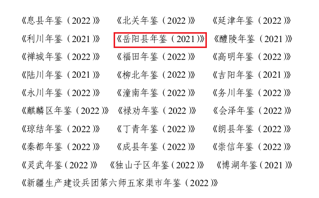 此次评审,《岳阳县年鉴(2021)》也获评全国二等年鉴全省一等年鉴。