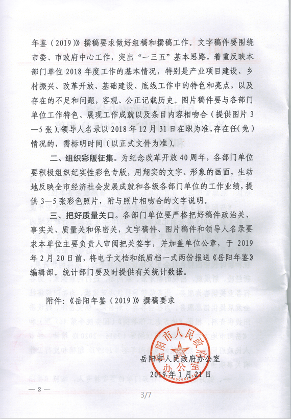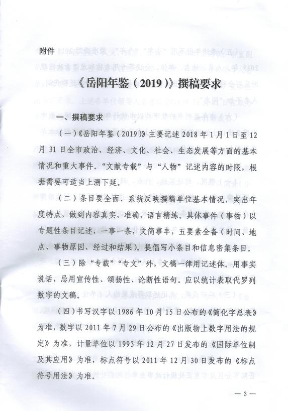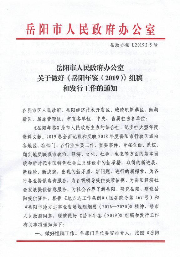 关于做好《岳阳年鉴(2019)》组稿和发行工作的通知
