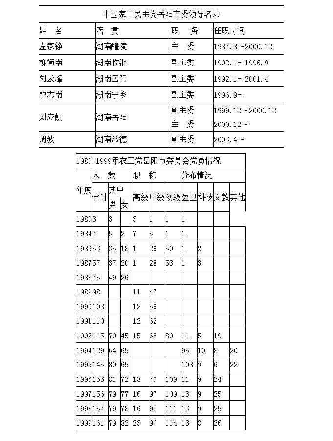 1984年11月,中国农工民主党(以下简称农工党)湖南省委岳阳直属支部成立,成员7人。