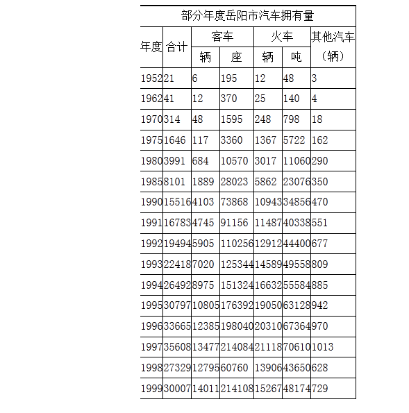 1966年初,汽车客运开始推行安全、正点运行和方便旅客服务,客运任务较上年增长近60%。1967~1968年,由于“文化大革命”的冲击,客运计划和秩序受到影响。1970年,湘运岳阳公司统一管辖境内汽车运输业,实行独家经营,完成客运量195万人次,旅客周转量5924万人公里。此后,县城间和县城至主要区、乡、镇间开通客班车。1975 年,跨省营运线路开通,有平江县至湖北省通城县,临湘至湖北通城等线;跨区营运线主要有湘阴至长沙、平江至长沙、汨罗至长沙等;通往农村、工矿(场)的线路和班次逐渐增加。境内有105个营运点分布在城乡公路线上,乡镇代办站已发展到80个,有4个车队分驻岳阳、平江和汨罗等县,营运里程2218公里,通客班车里程1306公里,是年完成客运量370万人次,旅客周转量10865万人公里。1976年,增开农村长、短途客班汽车。