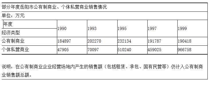 1994年,市一商业局成建制转体为市一商集团总公司,各县(市)商业局相继转体为商业总公司,其行业管理职能进一步弱化。随后,国有商业大力推行股份制、国有民营、租赁经营、承包经营等多种形式的改革,计划经济时期形成的“主渠道”作用丧失,基本退出日用工业品经营。以个体私营经济为主体的商品流通规模迅速扩大,市场份额逐年增长,初步形成以个体私营商业为主体,各种经济成分共同发展的流通新格局。1999年,全市实现社会消费品零售总额115.7亿元,公有制商业仅占16.4%,个体私营商业占 83.6%