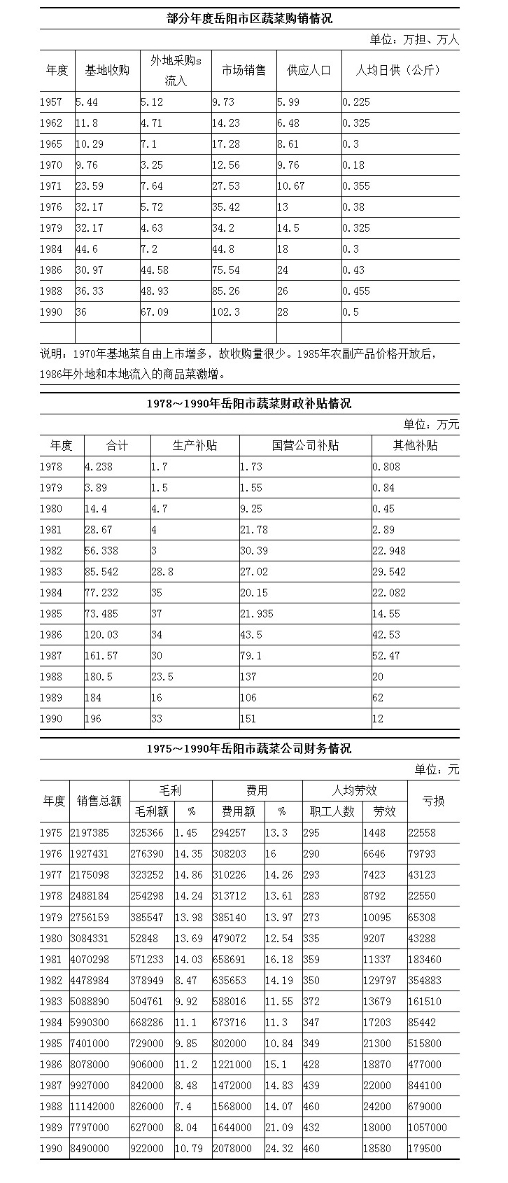 90年代,由于市场激烈竞争,财政补贴从逐年减少到取消,国营蔬菜公司的市场占有份额逐年下降,到90年代中期,完全退出蔬菜经营。蔬菜价格以市场定价为主,国营蔬菜公司仅在重大节假日及特殊时期,如人大、政协“两会”期间等,利用财政补贴,集中有限资金,组织适量货源投放市场,采用倒挂管价供应,平抑市场物价。90年代中后期,以市场供求为主导,由城乡集贸市场定价,物价部门仅作适度监督。