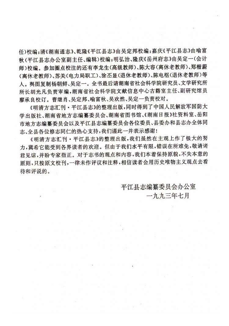 平江县志(明清)