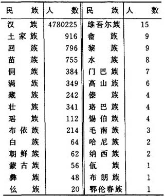 民族 1990年第四次人口普查统计,境内人口由30个民族构成。汉族人口4780225人,占总人口的99.91%。各少数民族人口4448人,占全市总人口的0.09%。具体情况如下: