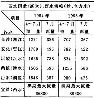 岳阳市1996年主汛期降水、洪峰与1954年比较情况