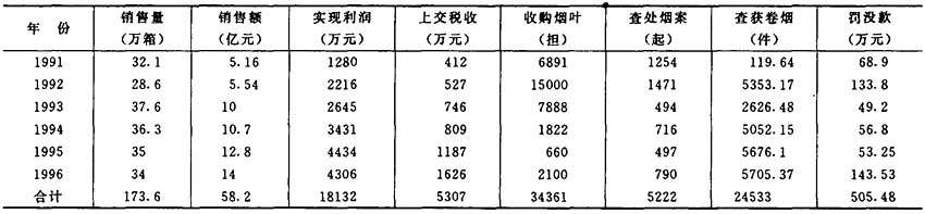 岳阳市烟草业主要数据(1991~1996)