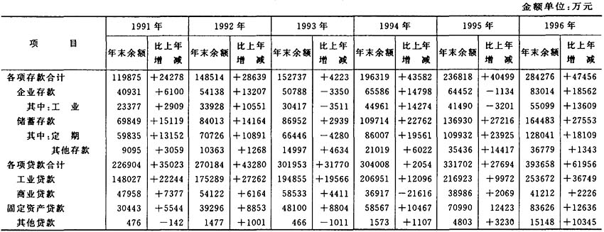 工商银行岳阳市分行信贷收支情况(1991~1996)