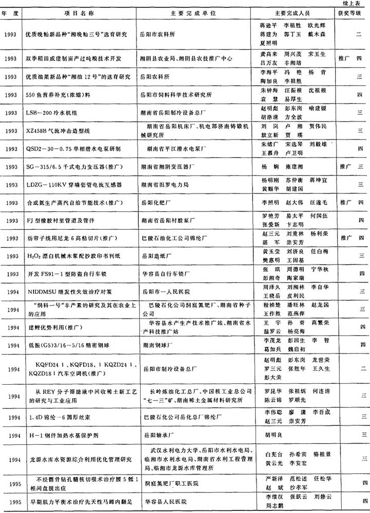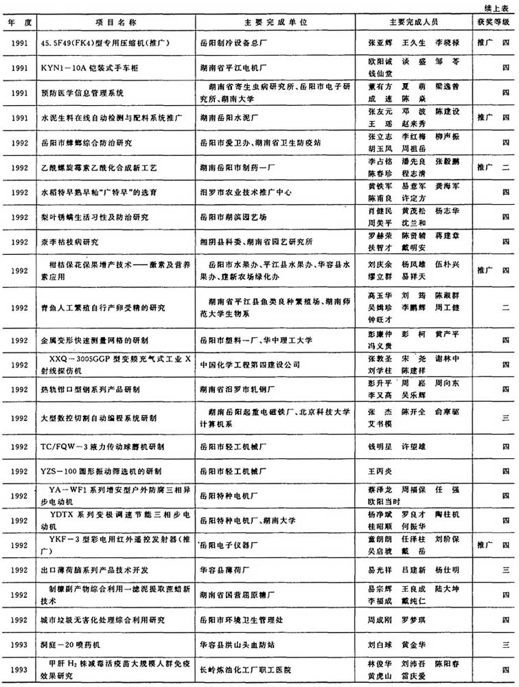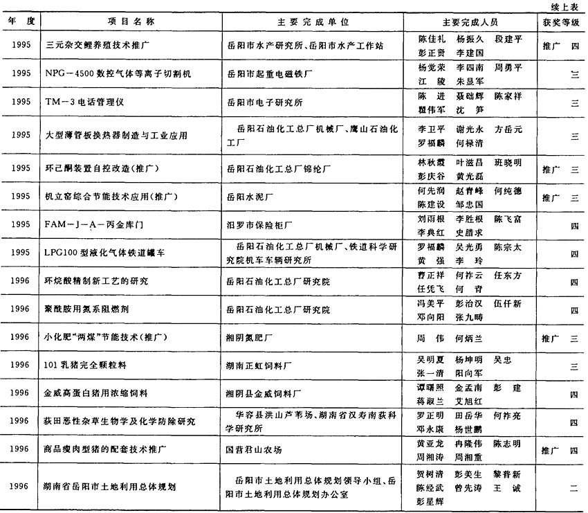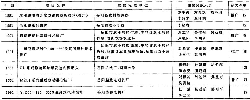 岳阳市获省级科学技术奖励项目(1991~1996)
