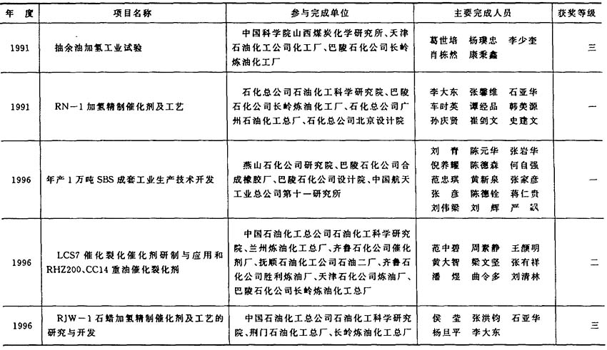 岳阳市获国家科学技术进步奖励项目(1991~1996)