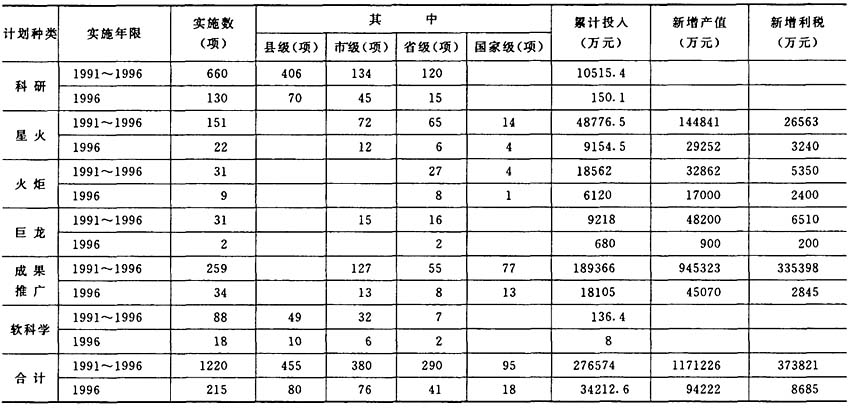 岳阳市各类科技发展计划执行情况(1991~1996)