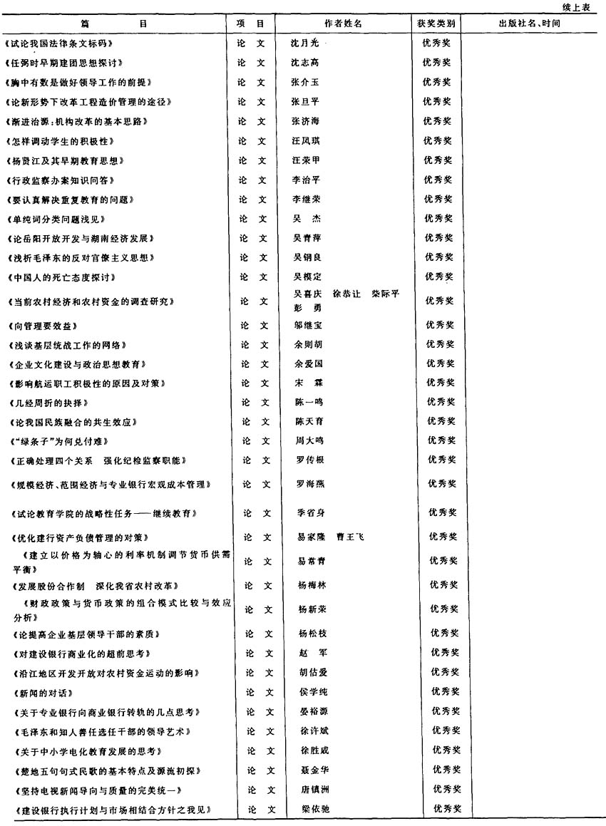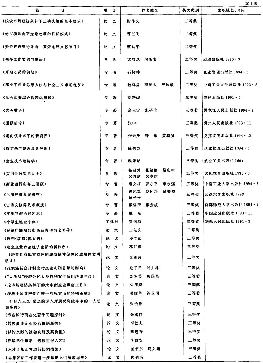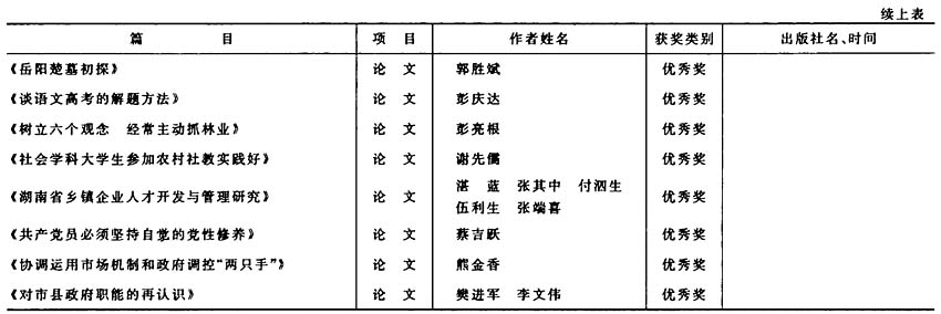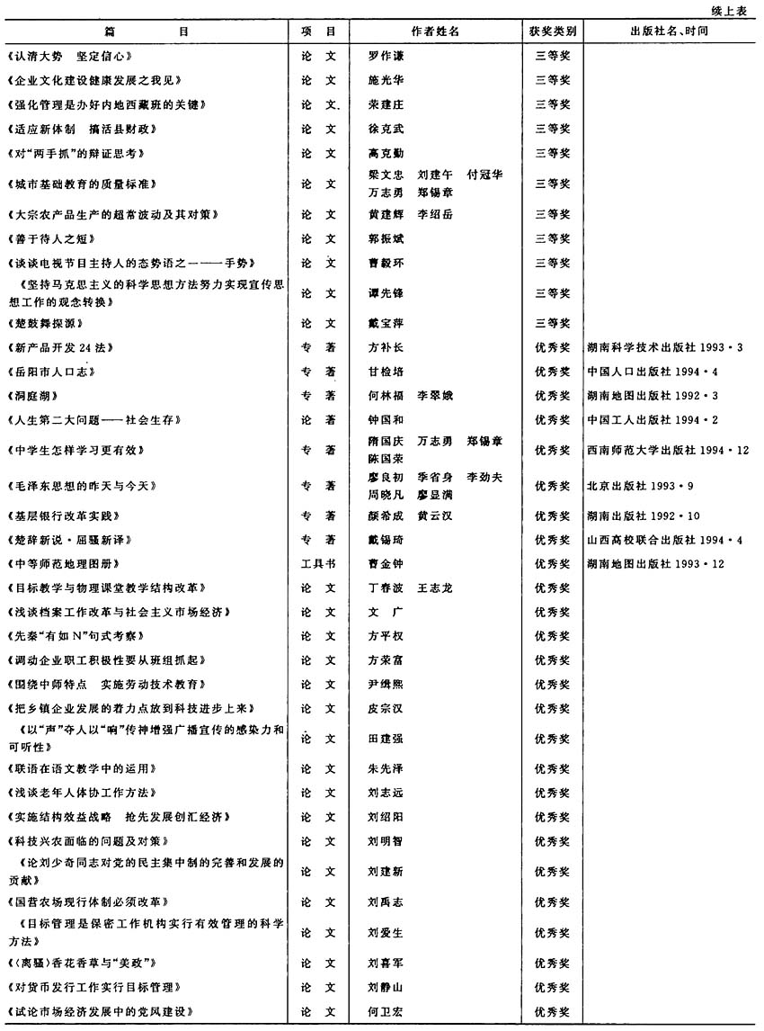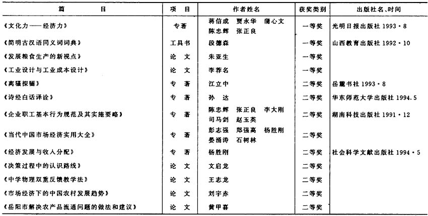 岳阳市首届社会科学优秀成果获奖项目