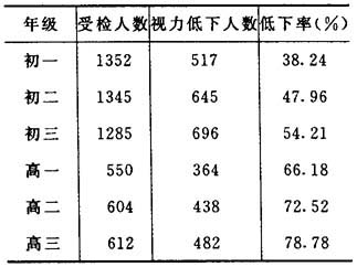 岳阳市1995年中学生视力低下情况