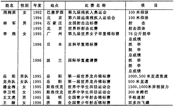 岳阳市运动员在全国、亚洲、世界性比赛获得冠军情况