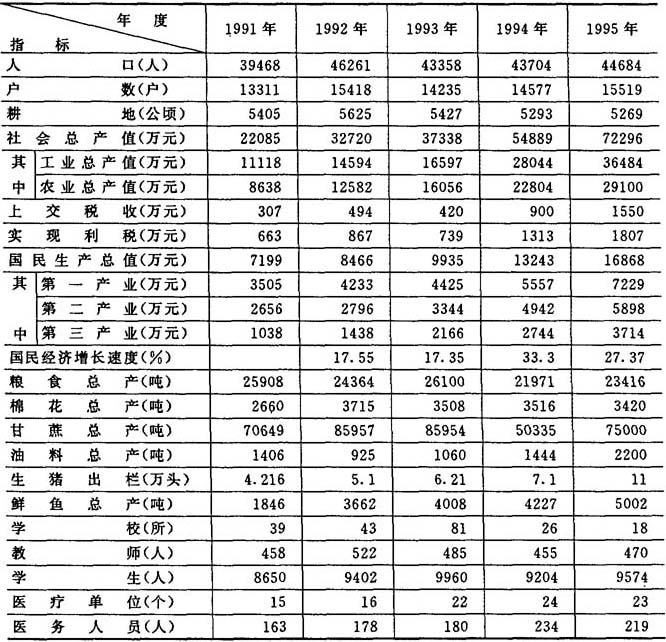 君山农场主要社会、经济指标(1991~1995)
