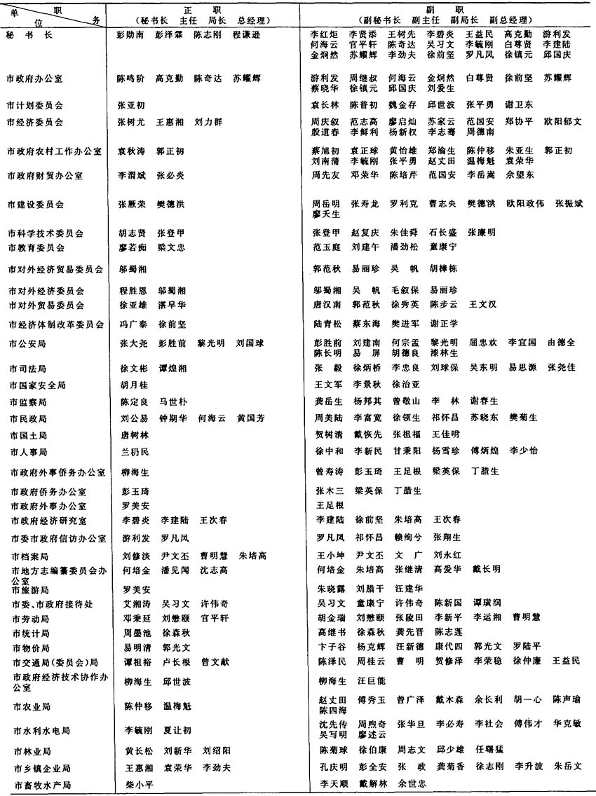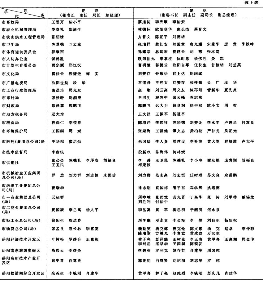 岳阳市人民政府工作机构、直属机构领导名录(1991~1996)