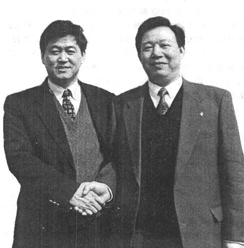 新任市委书记张昌平(左)和原市委书记、新任长沙市委书记阳宝华在一起。 (莫谈 摄)