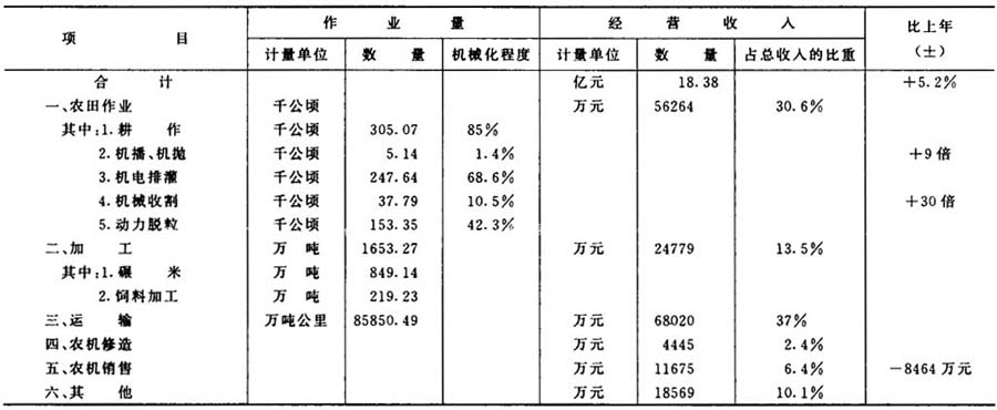 岳阳市1997年农机作业量、经营收入情况