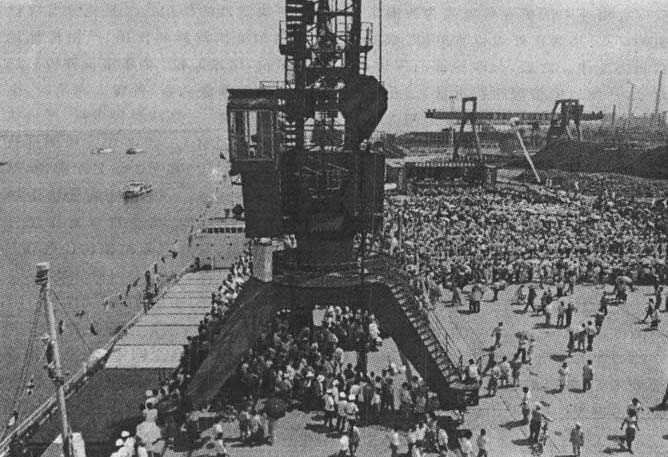 二、成功组织二航。9月14日,满载着1400吨公路用沥青的巴拿马籍的“东和”号由韩国蔚山起航驶入城陵矶港。此前,口岸办3次召集各联检单位、岳阳外办、城陵矶港务局和市公路局等单位负责人联席会议,就如何组织好二航进行专题研究,对航道的通航、外轮进港、货物报关与装卸、商品检验、船员登陆、生活用品供给以及各项后勤保障都作了详细而周密的安排,使二航按预定方案有计划、有秩序地进行。