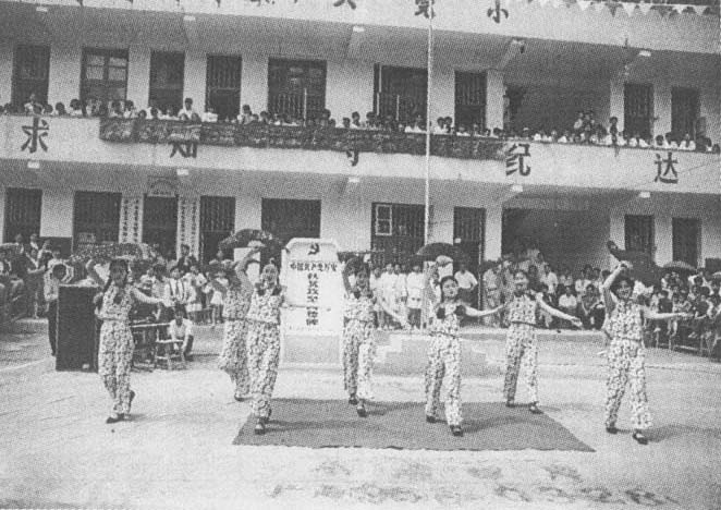 市粮食局捐资25万元兴建平江县瓮江镇杨源村小学。这是市粮食部门青年在该校进行慰问演出。
