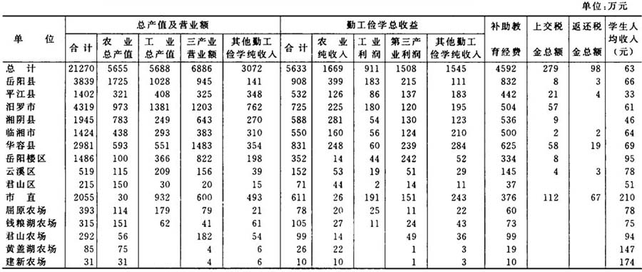 岳阳市1997年中小学校勤工俭学收益分配情况