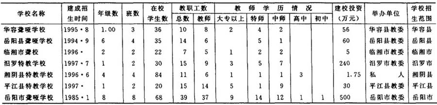 岳阳市1997年特殊教育学校基本情况