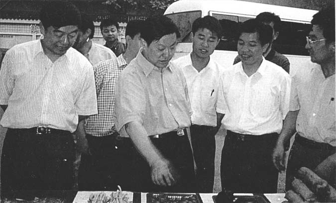 省长储波在市委书记于来山陪同下,察看汨罗市大荆镇无公害蔬菜生产情况。