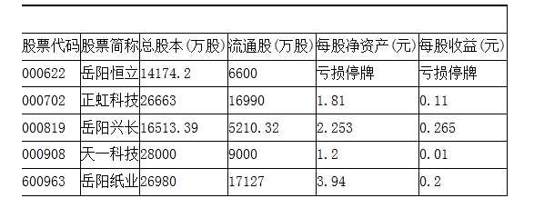 表7 2006年岳阳市上市公司股票基本情况