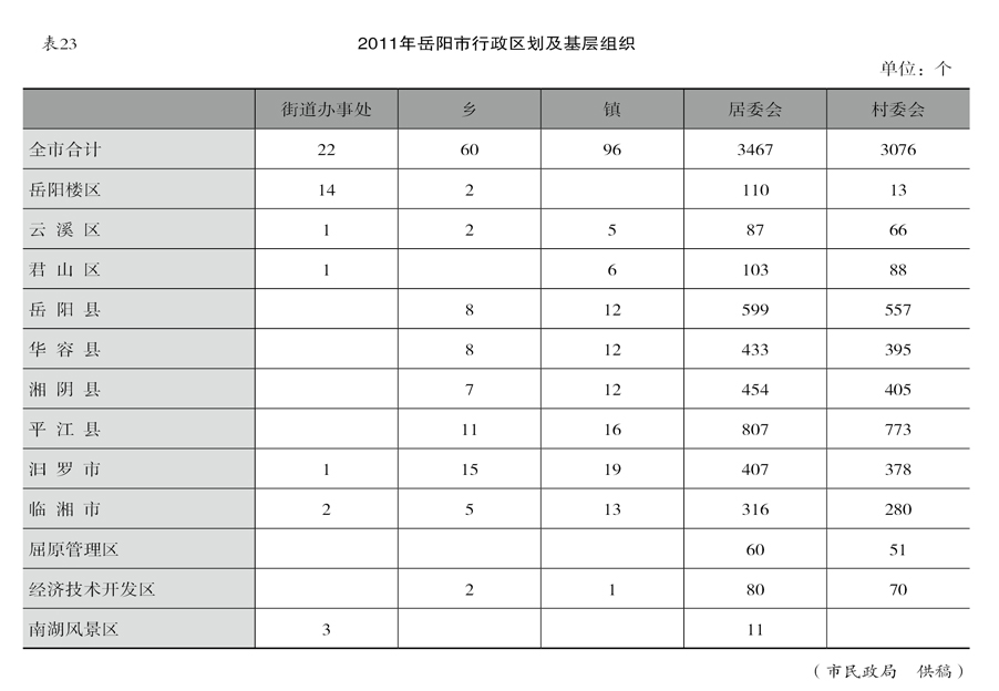 2011年岳阳市行政区划及基层组织