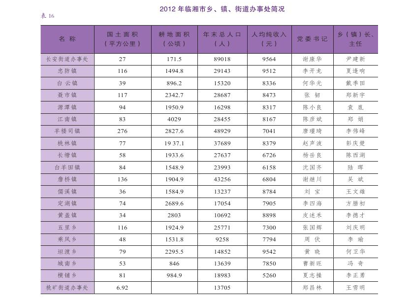 【概况】 2012年,临湘市辖13个镇、5个乡、2个办事处、278个行政村,土地面积1718.6平方公里,耕地面积3.82万公顷,年末总人口50.23万人,人口出生率13.47%,自然增长率6.96‰。最高气温37.3℃,最低气温-5.8℃,年降水量1759.8毫米。