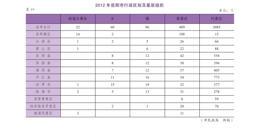 2012年岳阳市行政区划及基层组织