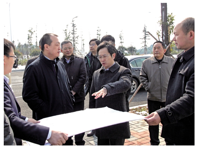 市委副书记李志坚与中储粮总经理吕军在项目选址地考察(临港新区 供稿)