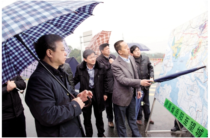 市长盛荣华在岳阳至望城高速公路建设工地视察(杨一九 摄)
