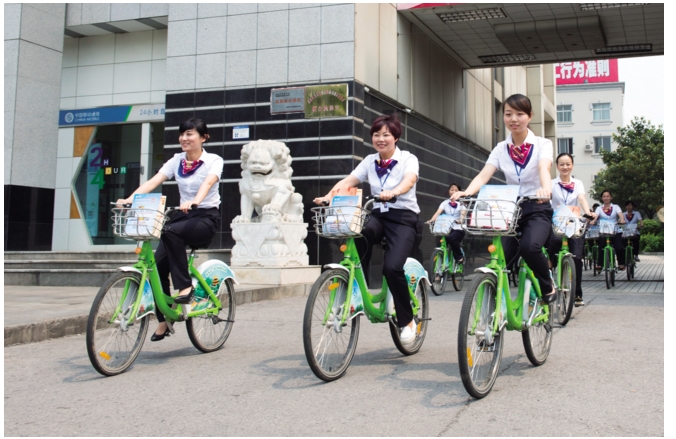【城区一期投放5000辆公共自行车】 2013年,市政府重视中心城区公共自行车租赁系统建设,市长盛荣华要求按照“绿色出行、健康岳阳”理念打造。市城管局让市民享受公共自行车带来的便利,在岳阳市中心城区公共自行车租赁系统项目一期计划中设置210个站点,投放5000辆公共自行车,建设2个中心调度站,以及南湖大道、金鹗路、洞庭大道、岳阳大道、巴陵路、学院路、求索路、洞庭路等公共自行车专用道,辐射“3区”的居民小区、办公区、超市、学校、公共交通换乘点、车站、购物中心、公园等。项目在中心城区距离保持300米一个站点,一般区域距离保持500米一个站点,后期根据市民需求逐步增加。租赁方式由市民通过实名制办理IC卡租用自行车,2小时内免费,并逐步推进与公交IC卡相结合。行政事业单位、中央省驻岳企业职工以及各类院校学生可由单位或学校统一组织出具担保,经城管、财政部门审查审核后统一办卡租用自行车。