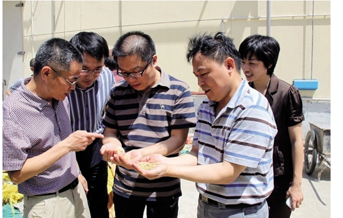 局党组书记、局长万东陪同省粮食局局长张亦贤在汨罗市考察早稻收购工作