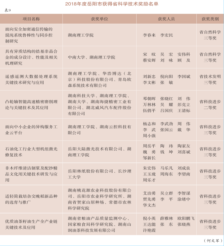 【知识产权奖励和资助】 2018年,全市获得省专利奖项目4个,其中湖南中创化工股份有限公司的“回收乙酸仲丁酯装置中的潜热的方法和联合装置”获得一等奖,湖南瑞源石化股份有限公司的“丁酮的制备与精制的方法”获得二等奖,岳阳昌德化工实业有限公司的“一种从轻质油中回收环氧环己烷工艺的开环反应新方法”、岳阳凯门水性助剂有限公司“一种乙炔合成炔醇类化合物方法”获得三等奖。做抓好专利资助申报,组织申报并审核省级专利资助项目65项19.5万元,组织开展市级授权发明专利资助工作,资助授权发明专利185件,发放资助费55.5万元,发放引进发明专利补助476件375.5万元。