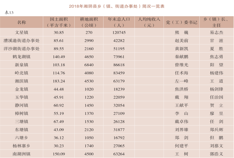 【概况】 2018年,湘阴县辖14个乡镇和2个街道办事处,土地总面积1581.5平方千米,耕地面积4.23万公顷。年末总人口78.41万人,人口出生率12.48 ‰、自然增长率4.3‰。最高气温38.3℃,最低气温-5.8℃,年降水量1285.8毫米。地区生产总值331.83亿元,同比增长5.5%,公共财政预算收入15.75亿元,同比增长5%,城乡居民人均可支配收入31115元、18400元,分别增长7.7%、8.3%。