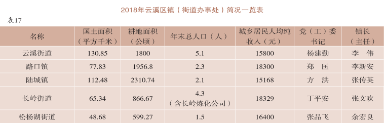 【概况】 2018年,云溪区辖2个镇、3个街道办事处,土地总面积435.18平方千米,耕地面积7533.48公顷。实现地区生产总值327亿元,增长7.6%;规模工业增加值(含2家央企)309亿元,增长8.9%;实现消费品零售总额27.66亿元,增长9.75%;完成固定资产投资67.74亿元,增长10.8%;财政总收入10.2亿元,增长8.3%,其中,税收收入占财政总收入和一般预算收入的比重93.5%、80.5%;城乡居民人均可支配收入37960元、19288元,分别增长8.4%、8%。三次产业比重优化为2.5∶74.3∶23.2。