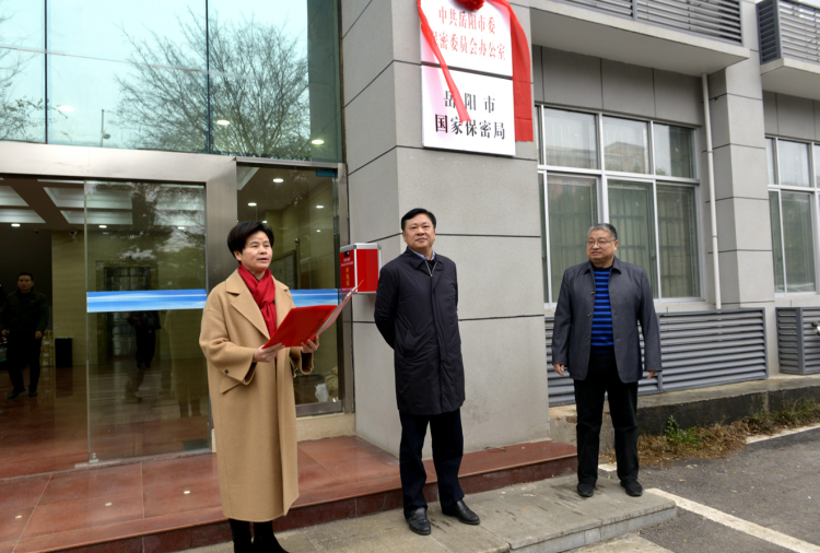 【市保密办获评“全国保密工作先进集体”】 2019年12月,国家人力资源和社会保障部、国家保密局发文对获得全国保密工作先进集体、先进工作者的单位和个人进行表彰,岳阳市国家保密局获得“全国保密工作先进集体”荣誉称号。2020年1月6日,全国保密工作会议在北京召开,中央政治局委员、中央书记处书记、中央办公厅主任、中央保密委员会主任丁薛祥为岳阳市委保密办授牌。
