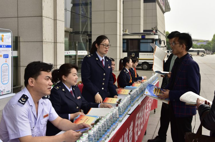2019年4月26日,市税务局在岳阳东站开展减税降费政策宣传
