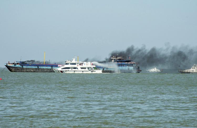 【船舶污染防治】 2019年,岳阳海事局印发《捍卫美丽长江“365”攻坚行动实施方案》,开展美丽长江建设,全力防治长江船舶污染。开展长江干线船舶生态环境污染隐患和风险普查,实施船舶涉污类行政处罚360起,处罚力度同比增长40%。开展辖区等级船舶环保风险排查,检查船舶3405艘次,排查缺陷527项,建立《环保不达标船舶清单》,行政处置船舶9艘,走访约谈公司6次,切实督促问题整改销号。船舶污染防治专项整治。4月1日—11月30日,在长江干线岳阳段开展船舶污染防治专项整治行动。执行长江水上“限硫令”,制定并推行《内河船舶燃油质量监督检查管理指南》,查处船舶使用硫含量超标燃油违法行为,从源头治理长江岳阳段船舶大气污染问题。全年对487艘到港船舶开展燃油质量监督检测,对12艘不合格送检船舶实施行政处罚,开出罚单12万元,促使辖区船舶燃油使用达标率提升40%。船舶大气污染防治,对长江干线岳阳段航行、停泊的运输散发有毒有害气体或粉尘等货物的船舶,实施货船封舱管理。9月以来,对船舶运输粉尘物质货物,未采取封闭或者其他防护措施行为行政处罚2起,罚款9000元,辖区船舶大气污染防治意识明显提升。