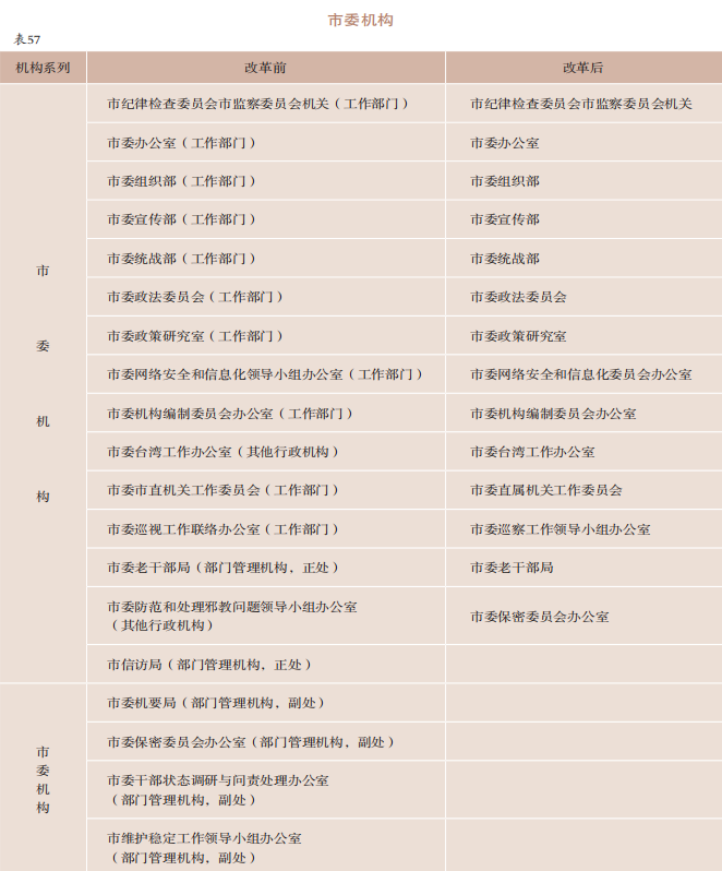 市本级党政机构改革机构设置情况前后对照表