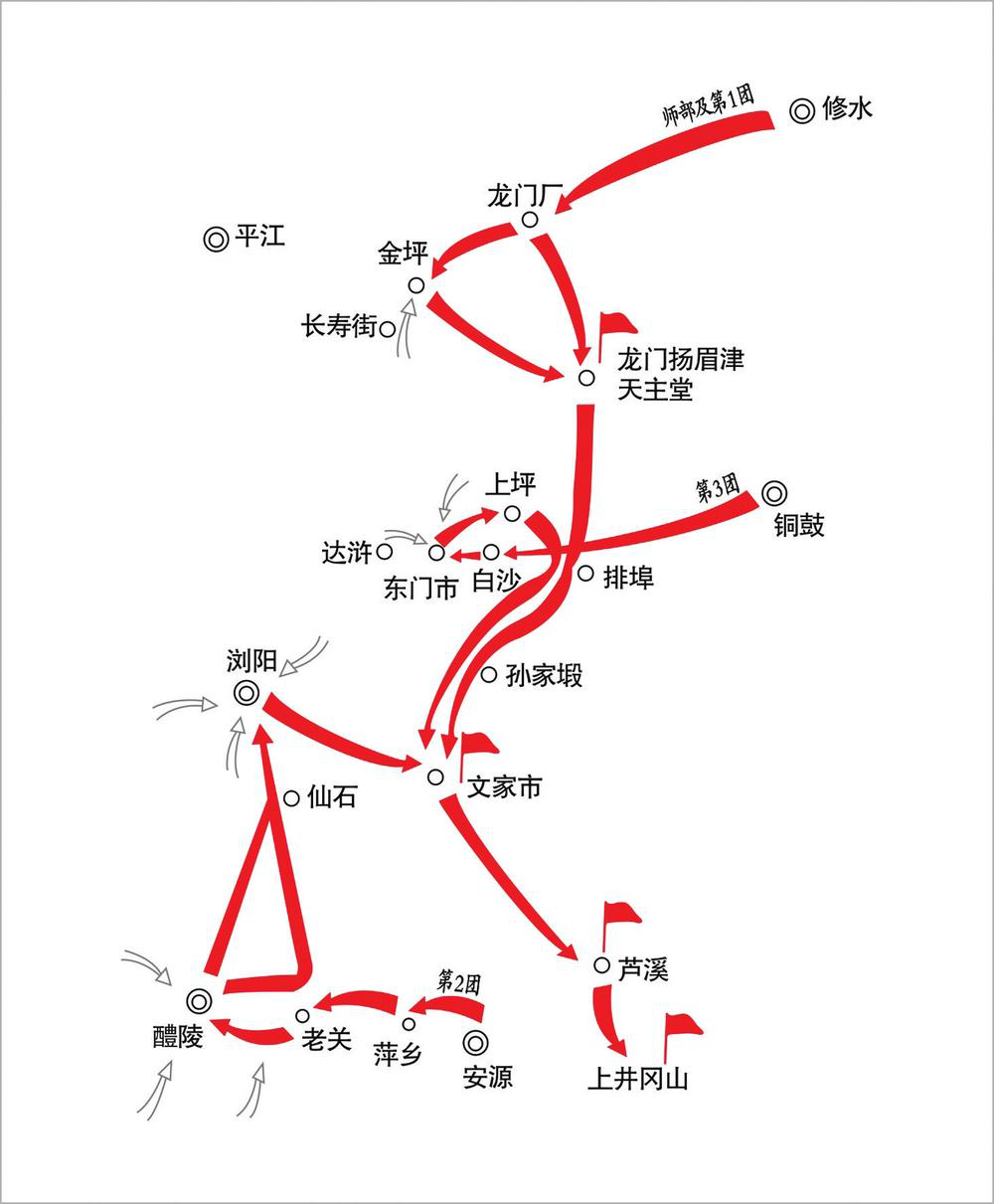 秋收起义进军路线示意图