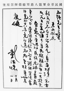 1937年7月7日卢沟桥事变后,国共合作抗日。9月23日,李志强带着一丝希望给八路军总指挥部写信,通过八路军驻长沙办事处主任徐特立直寄延安,询问丈夫的情况。