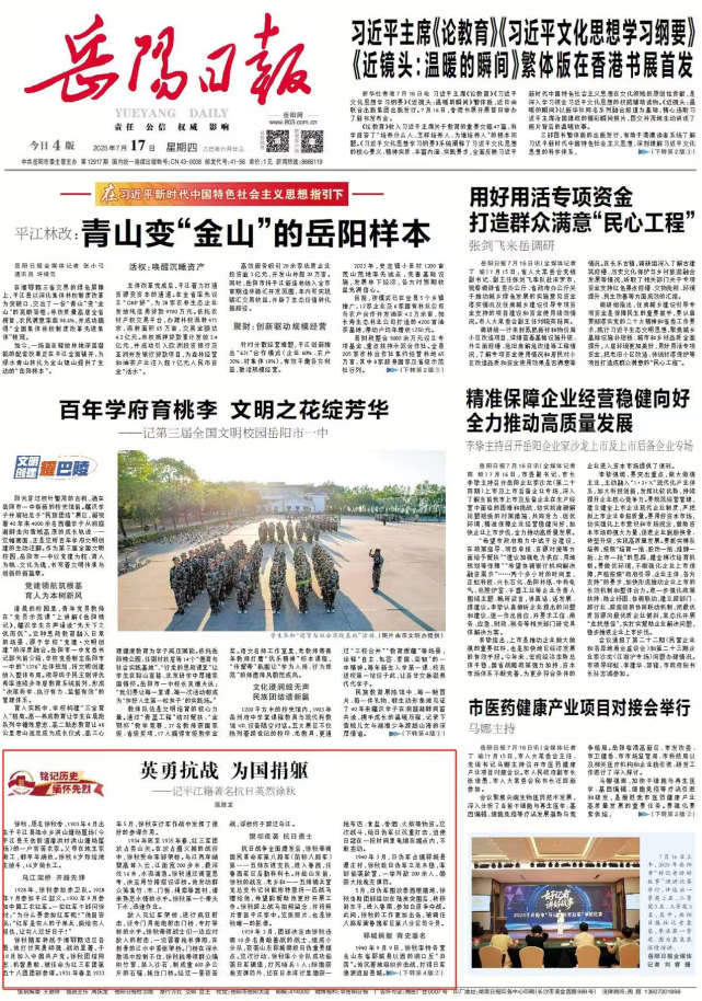 英勇抗战 为国捐躯 ——记平江籍著名抗日英烈徐秋