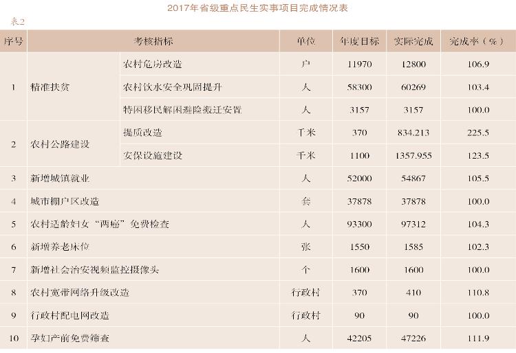 【小康工作监测督查】 2017年,市小康办制定下发《关于按月报送全面小康责任指标推进情况的通知》,对年度综合绩效考评中小康考核办法进行修订完善,制定出台全面小康推进工作奖惩办法,小康工作实现动态监测。明确数据统计监测部门在报送相关指标数据,严格把好数据报送审核关,加强监测预警、业务指导等工作,确保科学统计,真实反映经济社会发展水平。对30项指标数据进行重点监测分析,对其中18项指标数据进行跟踪预警,向5个部门下达6份指标数据预警函,推动工作整改,促进指标提升。深入分析监测数据,摸清市县小康指标的主要短板,并以短板指标作为突破重点,全面开展攻坚行动。将市本级50项一、二级指标按照责任分工分解到部门,要求对35项达标指标实现正向提升,对15项没有达标的短板指标制定攻坚方案,针对短板指标,一个指标一个函,下发函30多份,要求13个短板部门和12个县市区实行挂图作战,对照差距,调研分析,强化工作措施攻坚突破。与市委督查室对县市区和市直部门开展督查,对发现的问题进行分析汇总,及时协调处理。至年底,开展统一督查2轮次,对市直部门开展专项督查30多次,反映和协调指标提升突出问题18个,极大促进指标提升。针对工作落后、进度滞后的指标,约谈部门负责人或分管负责人30多人次。